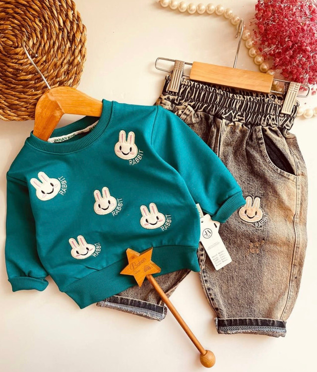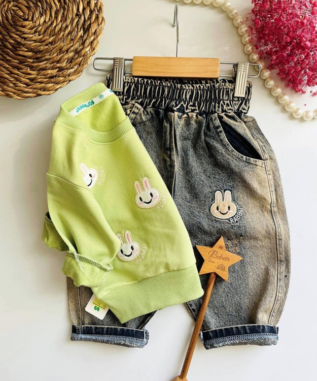 بلوز شلوار گلدوزی شده طرح خرگوش
